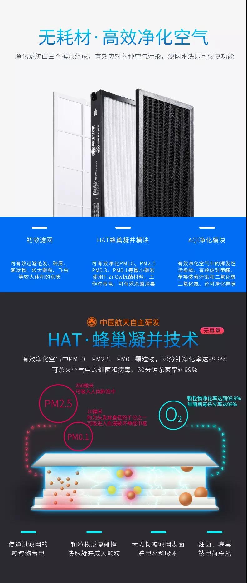 航天迅馳空氣凈化器為無耗材空氣凈化器,凈化效能超2016新國標(biāo)3倍;CARD值(每小時凈化空氣量)335立方米/每小時(大);運(yùn)用中國航天自主研發(fā) HAT·蜂巢凝并技術(shù),有效凈化空氣中PM10、PM2.5、PM0.1顆粒物,30分鐘凈化率達(dá)99.9% 可殺滅空氣中的細(xì)菌和病毒,30分鐘殺菌率99%。